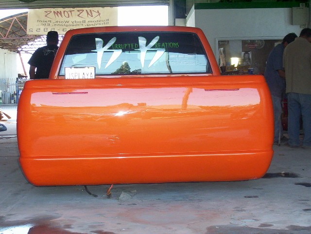 Inprogress mods, New Bed project, raisin bed floor 7 3/4 , 61.5 in LED, fully shaved bed. flush gas door, color match line x orange,shaved bed rail