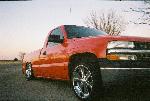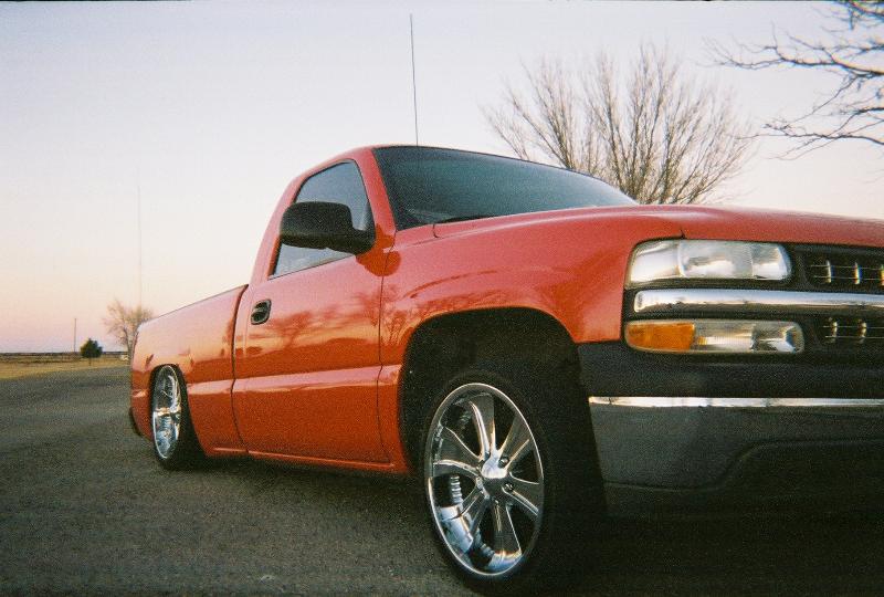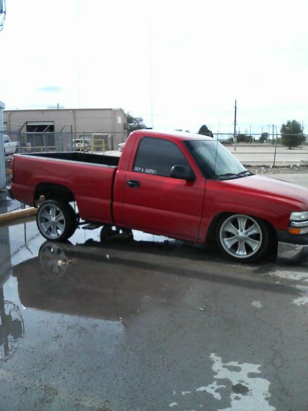 primer TW0-TONE WHITE AND RED, suidice doors, roll pan, shaved tailgate handle, shaved bed stake pockets, ss mirros,shaved handles, paint matched bow tie, flowmaster, removed moldings, devious customs fuel cell