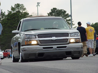escalade rear door handles, shaved third brake light shaved tailgate and molded roll pan shved stake holes smoothed and painted bumper pad and lower valance street scene mirrors ragtop billet grill and bow tie