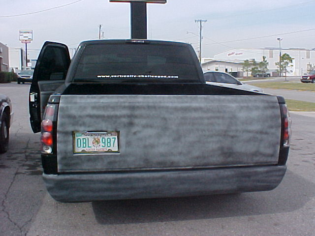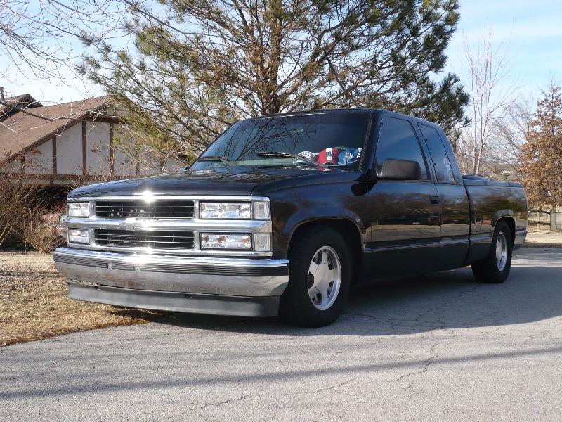 Chrome bowtie, TYC Clear Headlights, Clear Turn signals, Clear Corners, LED 3rd Brake Light, TYC Black Euro Taillights, 5% Tint, Smooth Roll pan, Tailgate handle fliped and shaved, License plate box in tailgate, Shaved Stake Pockets
