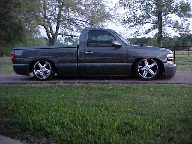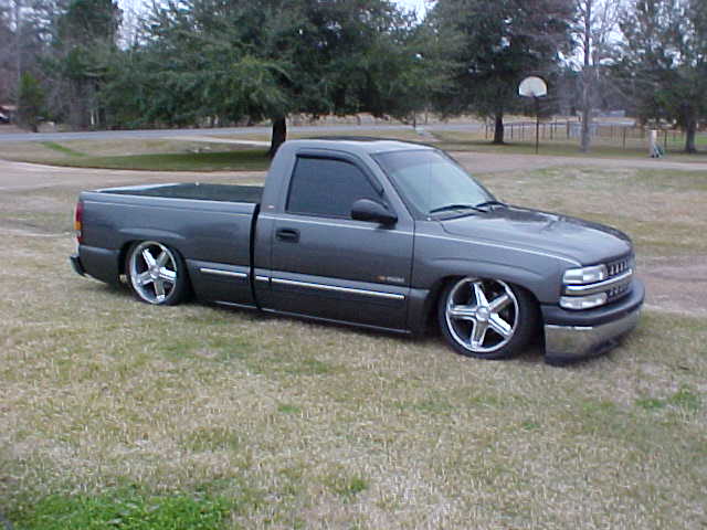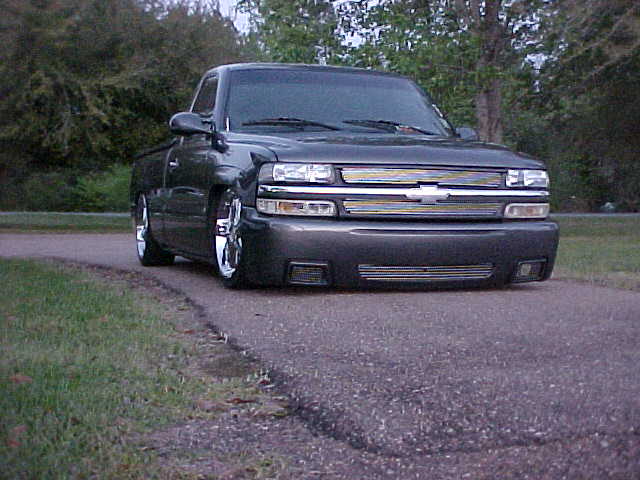 shaved tailgate handle, shaved emblems, molded rollpan, ss front bumper,smooth wiper cowl, ss mirrors, upper and lower billet grilles, LoRider bedcover, escalade door handles, 03 silverado taillights, billet shorty antenna,