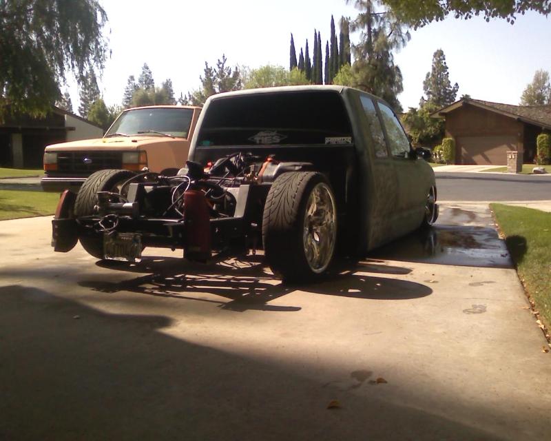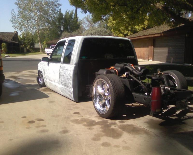 Traditional body dropped 4 3/4" to the doors. Shaved doors and tailgate..