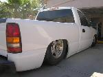 Bagged, parrallel four link in the rear combined with watts. Built some upper control arms, modified lowers to accomidate stock 16's and stock spindles while still laying a 30" in diameter wheel/tire combo.