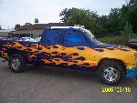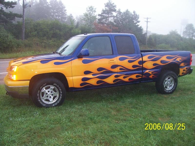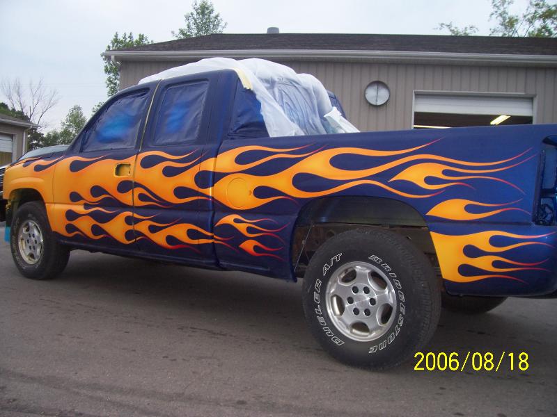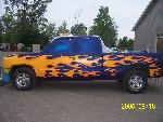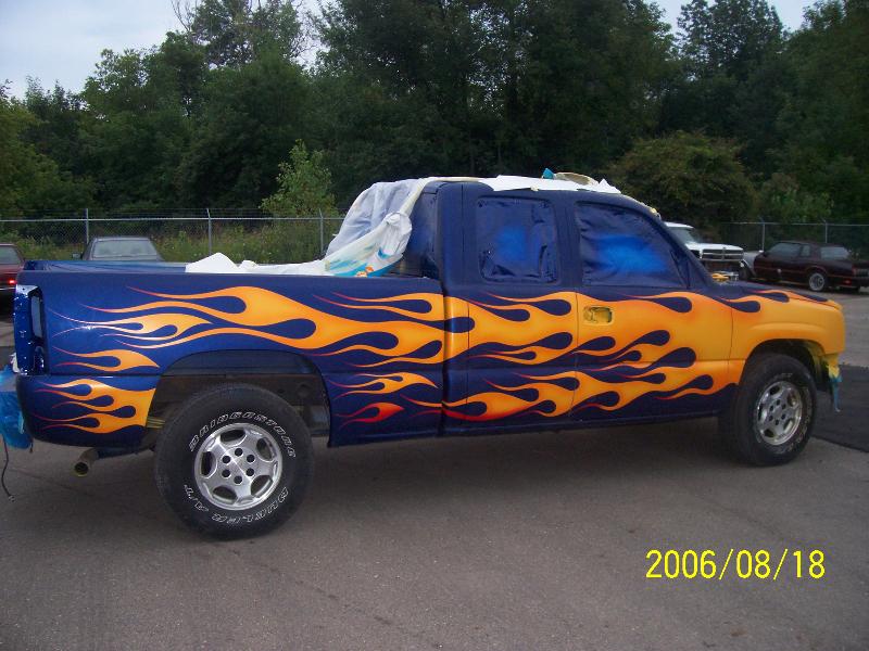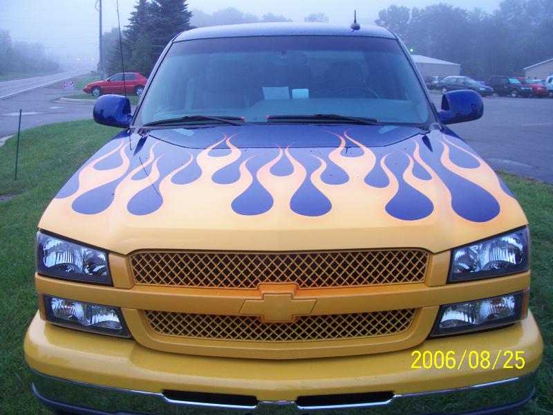 TRUE BLUE W/ BLUE ICE PEARL, YELLOW ORANGE AND RED FLAMES