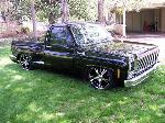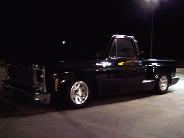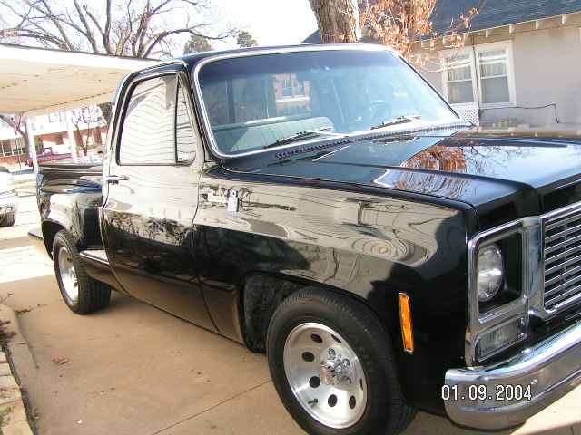kinda black.. Crystal Black,with a 93 or 94 late Model Step-side bed, fiberglass bed cover, Billet Step Plates