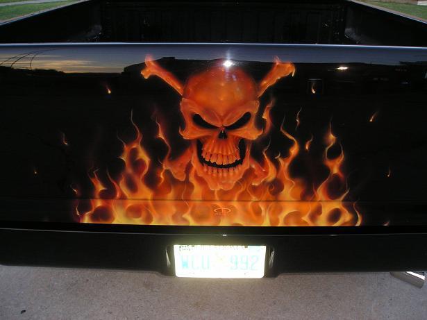 Custom Paint By Charles Degand at CD Designs in Moore, OK. Shaved handles and tailgate, Molded in rollpan, billet emblem and grille, painted mirrors.