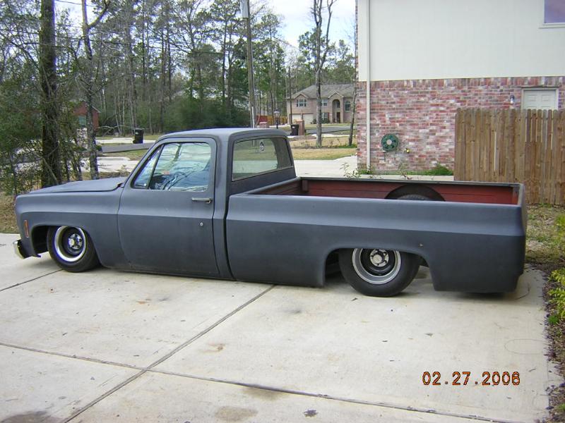 Stock wheels painted black with 235/7515 in front and 275/75/15 in back