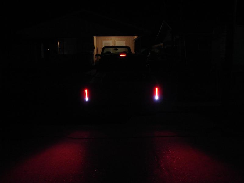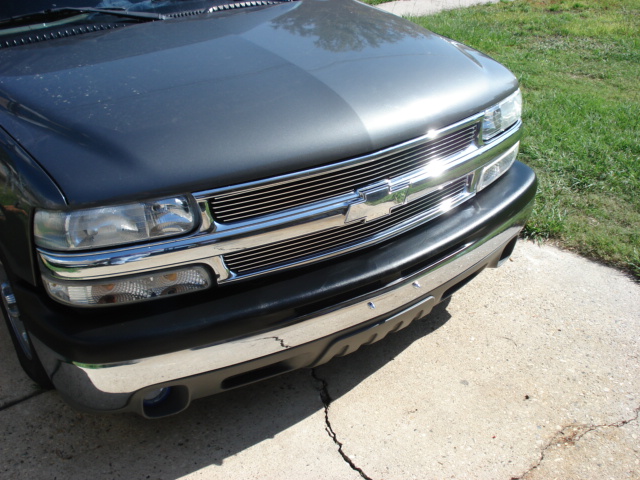 Chevy tahoe grille shell with carriage works billet insert & billet bowtie. Z71 tahoe front airdam. Molded rollpan and shaved tails and 3rd BL. Replaced with Hi-Tech LED's. Tubbing the bed and sheetmetal bed floor in progress.