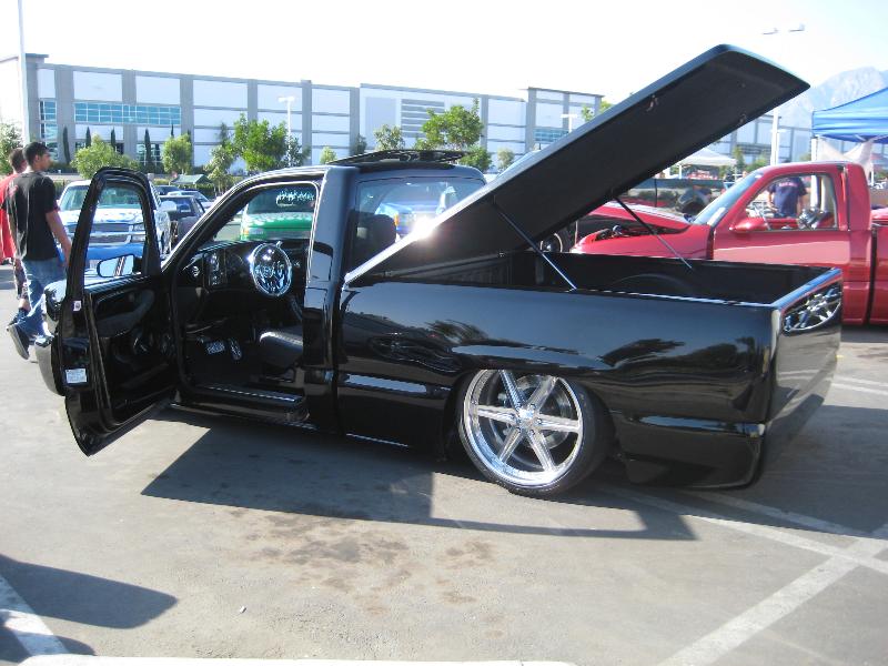 All plastic painted, Lots of billet including; Trenz one piece steeringwheel, Trenz flame rearview mirror, Trenz flame door sills, Trenz flame pedals, Trenz heaterbox cover, billet dash kit, billet shifter, and empire billet vents. Headliner shaved with Suede. Escalade guages. 04 silverado bucketseats with black leather and suede inserts katzkin covers, 02 Yukon center console.