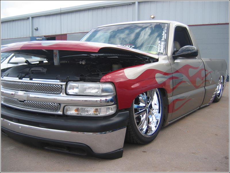 shaved handles(all three), APC mirrors, billet grill, billet bow tie, billet 3rd brake light, clear corners, billet antennae, molded in rollpan