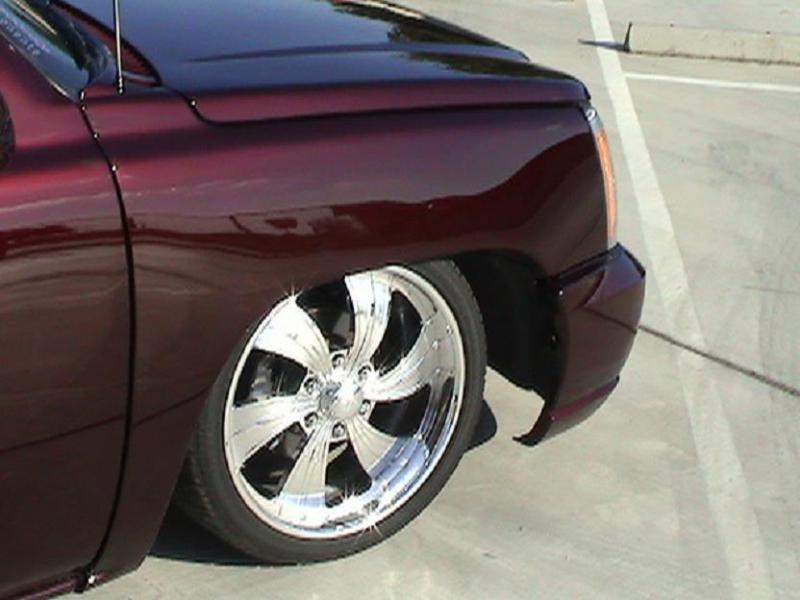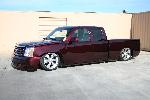 SOLD - House of Kolor Burgundy Kandy Paint, Caddy Clip, Molded shut bed with color-matched LEDs, FULLY SHAVED including ALL BODY LINES. Paint & Body done by Carlos Trejo @ Kaotik Kustoms in Reedley, CA.