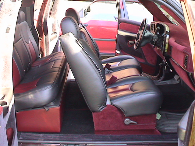 SOLD - Velour wrapped dash, door panels wrapped with black and burgundy velour, headliner-black and burgundy velour, seats wrapped with black and burgundy vinyl, and black carpet with burgundy trim.