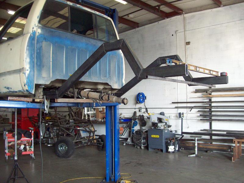 plc white primer 4 now, movin cab and front end back a whole half in so front tries are in middle of the fenders,should look munch better done this way.