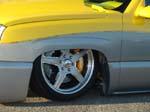 Art at GO EZ installed DJM upper and lower control arms and 2600c bagges in front and KP Compants six link in the rear with 2600c bagges, four compressors and two five gallon tanks, Wilwood 16 inch, 6 piston cal kit for braking, frame painted silver and bronze