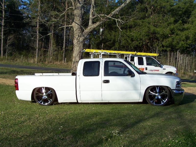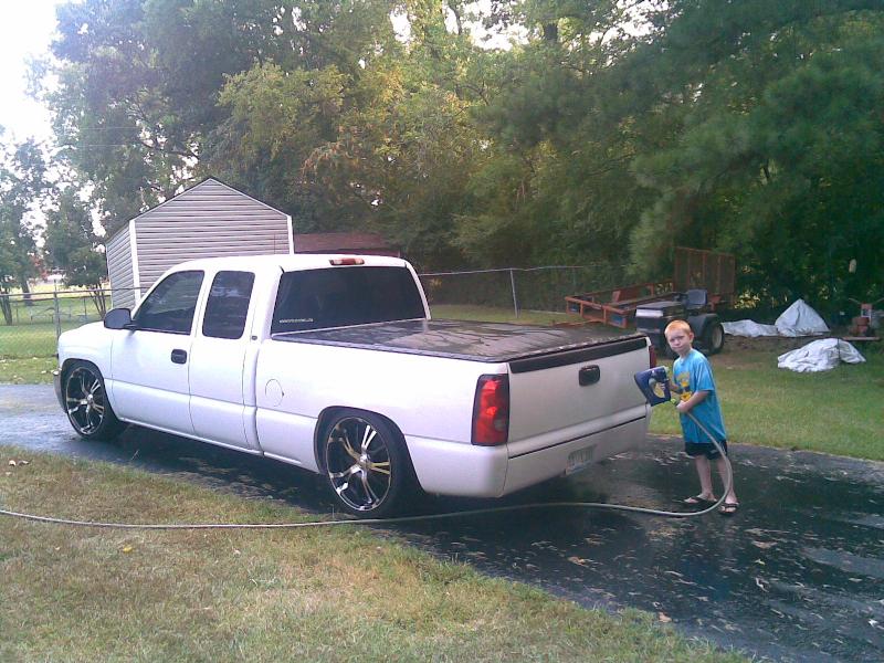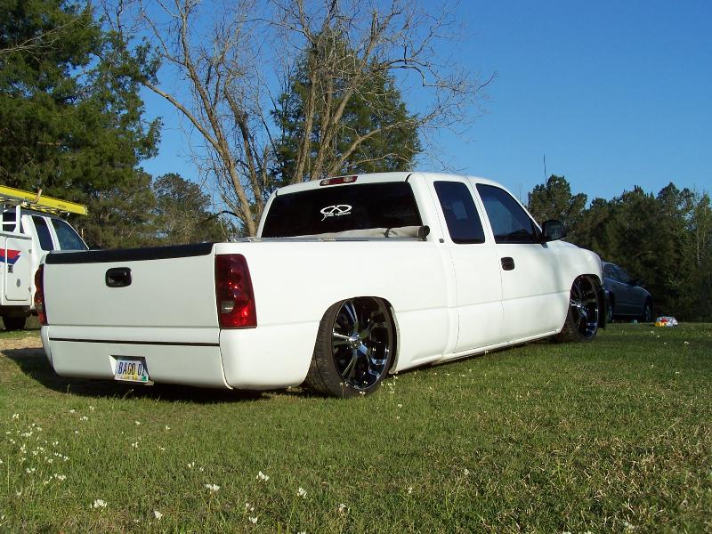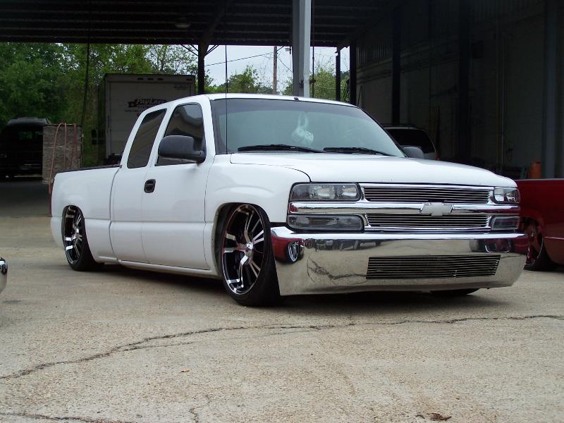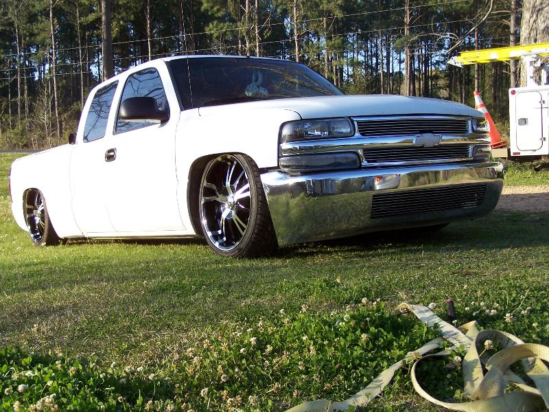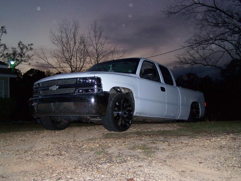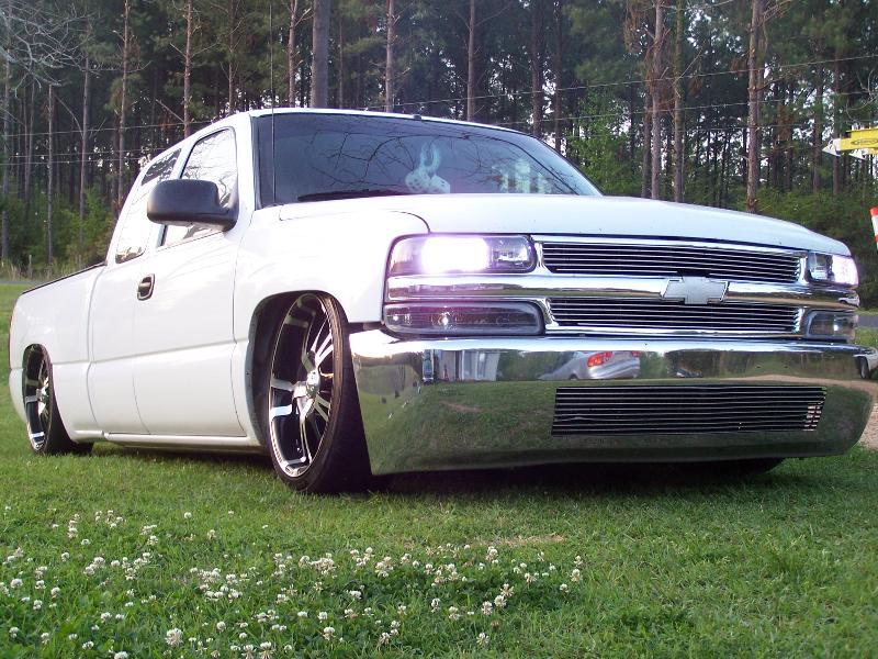 Chrome Tahoe grill with billet, smoked headlights with 12000k HIDs smoked corner lights and wierd chrome front bumper with billet inserts. 05 taillights rollpan