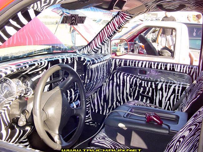 zebra painted dash and door pannels with zebra covered seats and head linner escalade gauges bowtie rear view mirror and othe billet trim