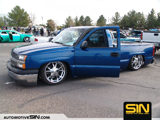Shaved handles,tailgate, stake pockets, and molded rollpan,billet grill and antenna.