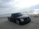 05 cadi front end,shavered up,billet motorcycle gas cap,camero lime green with flat black flames,sheet metal bed with Grant tubs