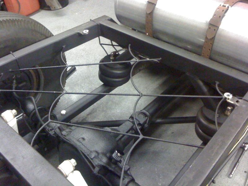 st. axel in the front with a 4" drop...2 link in the back