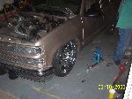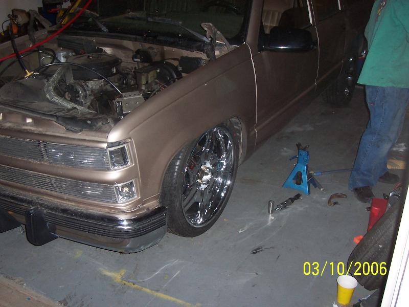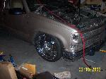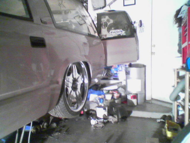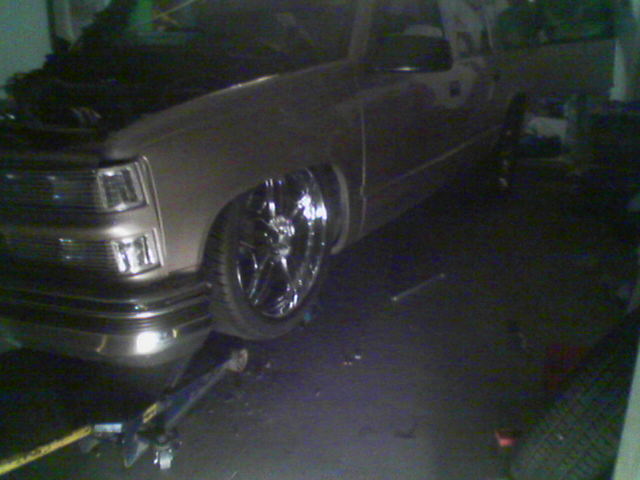 over at a friends house getting cut up to lay out on 22"s, got slam bagz triangulted 4 link GC valves EDC and 8 gal chrome tank
