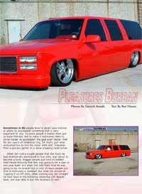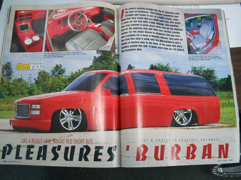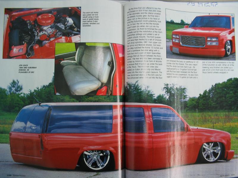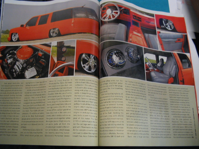 Diversions, Showfest 2k3 2nd Full Size SUV Radical,LDSD 1st SUV, Forbidden,Best of Show, 1st SUV,Lowest truck,Rocktane Show, Top 25 Featured in the Jan 2004 SSM Mag.Gville showfest 3rd SUV Rad, Shot for Street Trucks and Sport Truck.Then Drove it all the way home from Gville.Oct 2004 Sport Truck Cover shot,Oct 2004 Sport Truck picture, Dec 04 Sport Truck feature.Street Trucks dec 2004 show shot,April 2005 Street Trucks feature.Sport Truck May 2005 Draggin on the events calender, E air valves Flyers,Slam Jam Flyers 2005, West Coast Accessories Catalog, Numerous Rozzi Wheel catalogs.