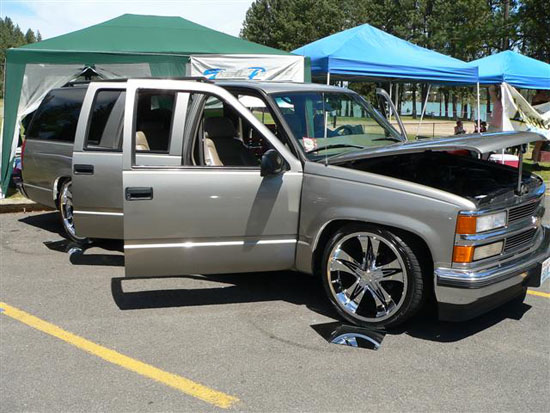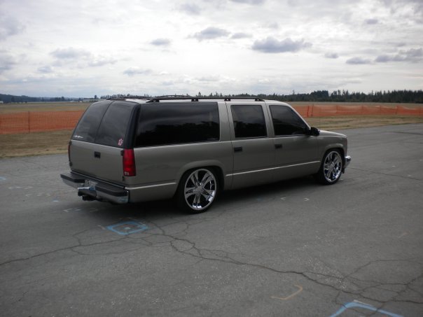 Belltech 3 inch drop springs and 2 inch drop spindles. DJM flip kit with raising shackles for a 5/7.5 drop. Helper bags on the leafs for towing.