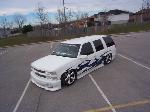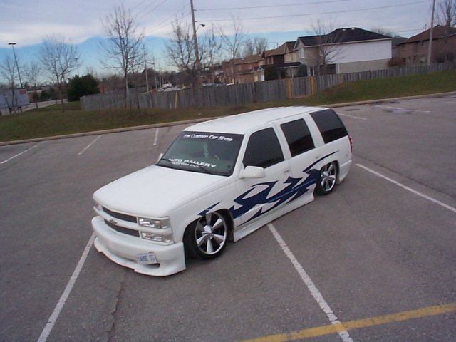 Shaved Bodyline, Frenched Front Door Handles, Rest of Handles Shaved, Smoothie Rollpan, Custom Caddy Tails, Escalade Front End, Shaved Roof Rack Holes, Shaved Gas Cap / Relocated.