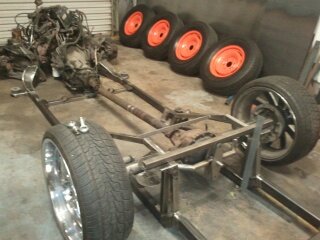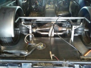 firewall back frame 2x3 upper and lower control arms parl. 4 link with a watt link slam bags all around 8 valves 9 swich box