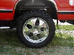 Cowl hood, custom tribal grill, euro's all the way around, chrome fender trim, chrome nerf bars, billet gas door, and a Wind Jammer fin.