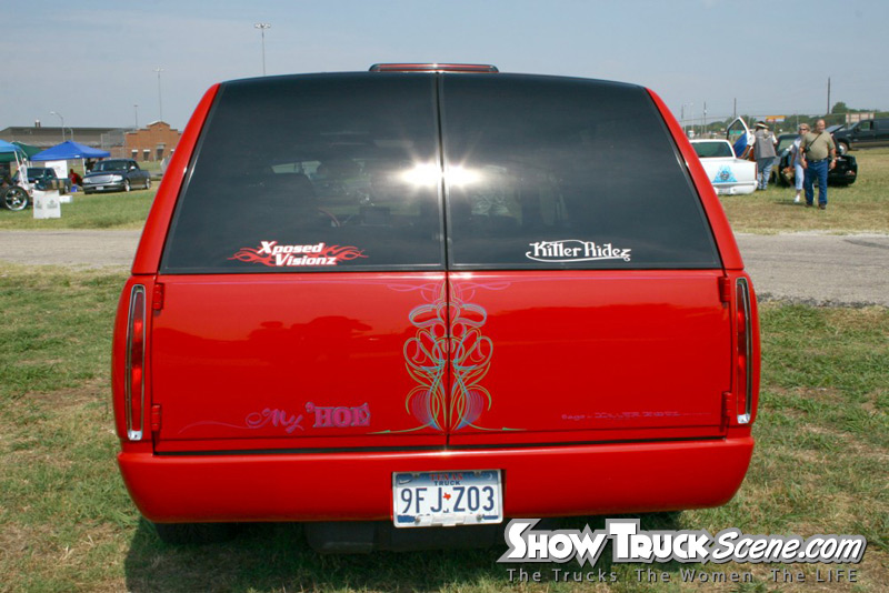(PPG Flamed red, PPG silver, PPG purple met, Flames) caddy tail lights, everything shaved, sun roof, green,pink,cyan,yellow,(pen striping)by Dirty of Dallas