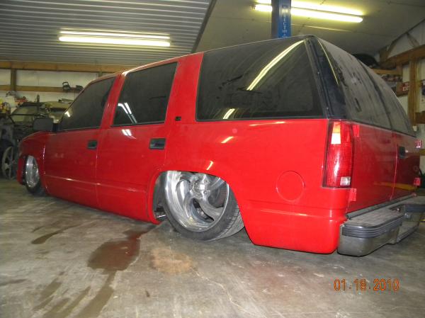 move fuel cell toward rear axle 2", roll pan molded, shave rear handle and roof rack holes, relocate rear fuel lines and move lower link bars inboard of frame, 96 Impala rear axle narrowed 6", rebarrel rear wheels to 6" lip, shave gas door and relocate behind driver taillight, single color paint (color undecided), lq9 with z06 heads cam and intake with 4l80e