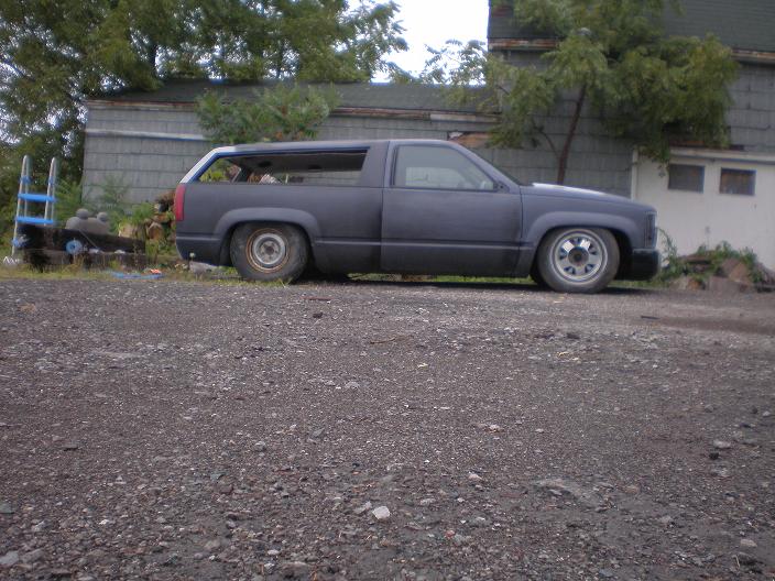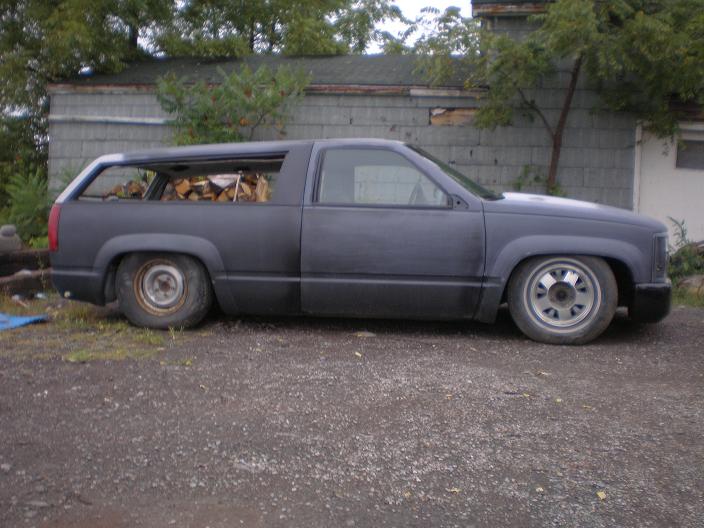 3 1/2" body drop, staggard 4/8 chop top shaved handles,rollpan, mustang cowl hood moulded on stock tahoe hood