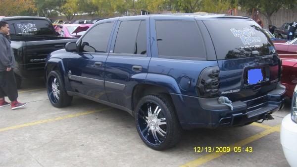 blue trailblazer on 22s with smoked tail lights and third brake light