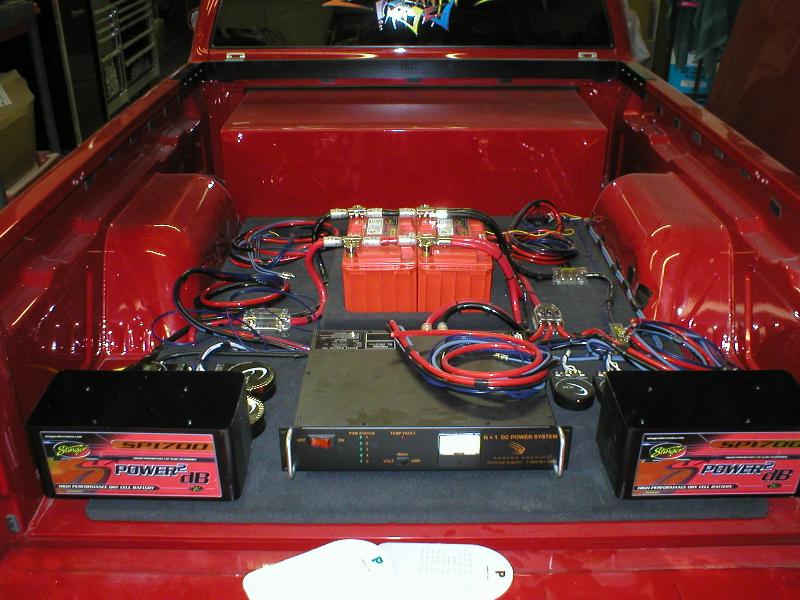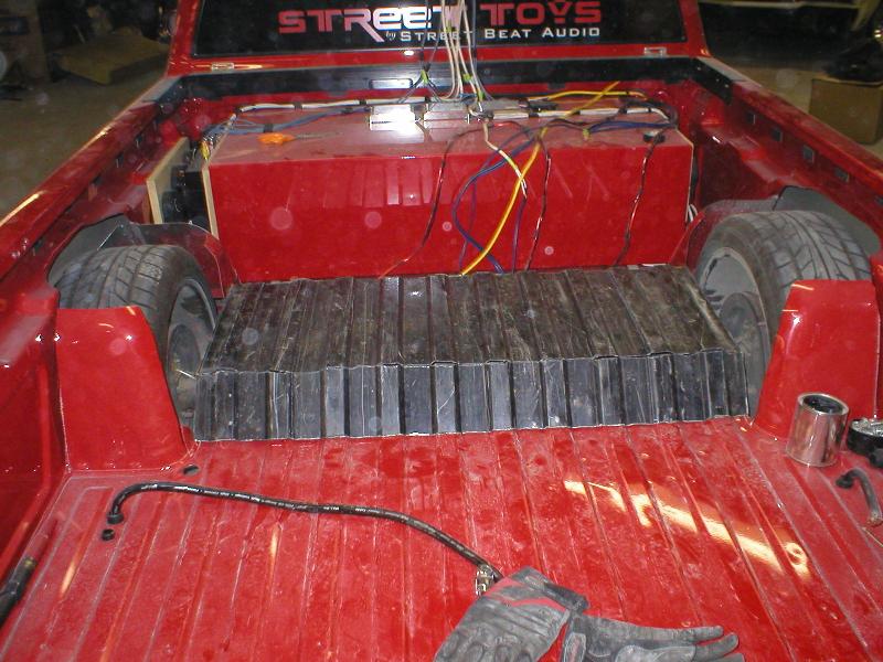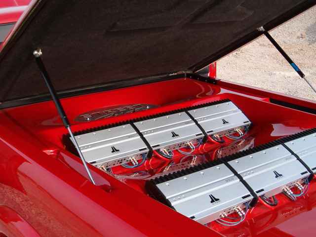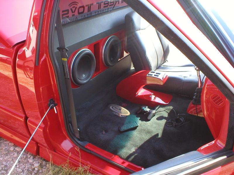CD player...4" coax in the custom fiberglass kicks.. stinger battery.. subs are coming
