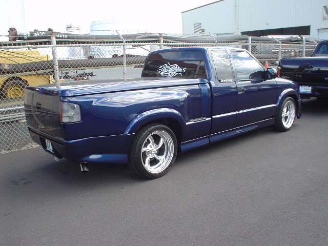 Goodmark cowl hood, street scene grille inserts, ss bowtie, APC headlight & diamond corners, 6" billet antenna, Street Scene signal mirrors, tribal flame tint, fiberglass tonneau cover, APC smoked taillights & 3rd brake light, Eastcoast customs xtreme rollpan & step shavers, gibson cat back exhaust, Sir Michaels shaved tailgate handle relocator, Herculiner bedliner.