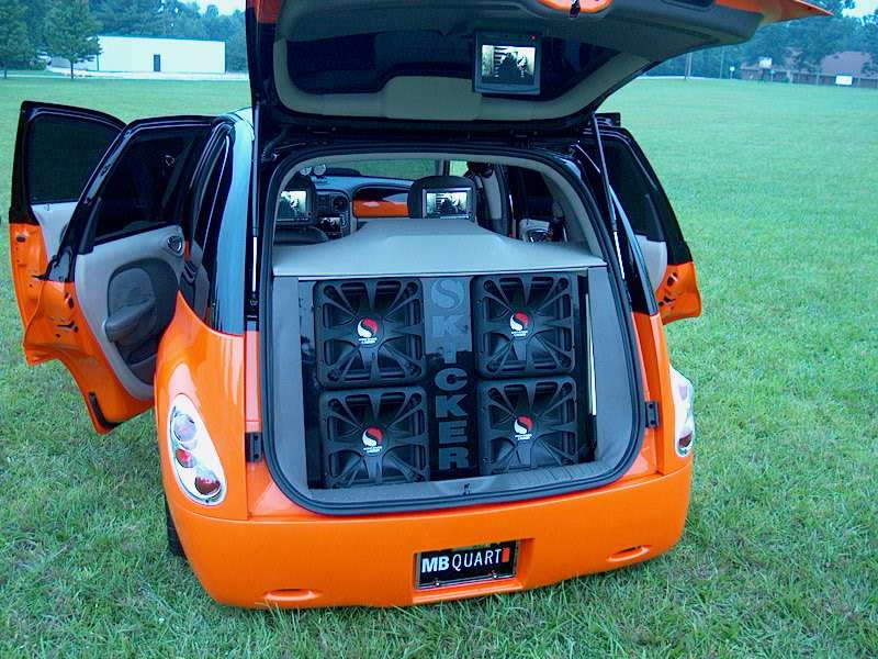 4 Tvs, 4 12"kicker square solo baric, Mb Quarts front end, Mb Quarts crossovers, street wires battery caps, and battery, 3 pp amps, 5.1 surrond unit, 6 disc dvd changer,switcher, playstation 2, all street wires wiring, wireless headphones
