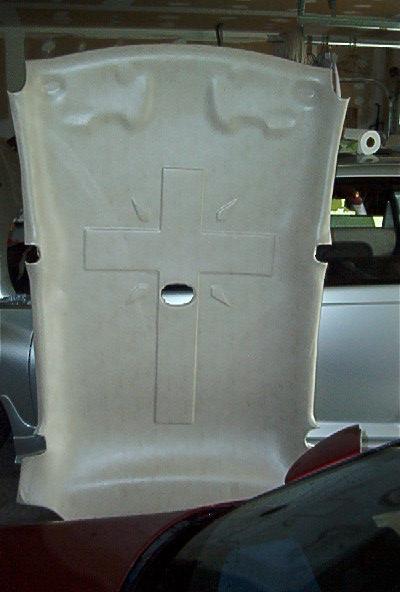 tan ostrich skin, and silver leather. dash fiberglassed and painted. maltese cross rear view mirror. alot of diamond plate stuff. chrome door locks with pt logos.