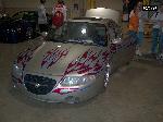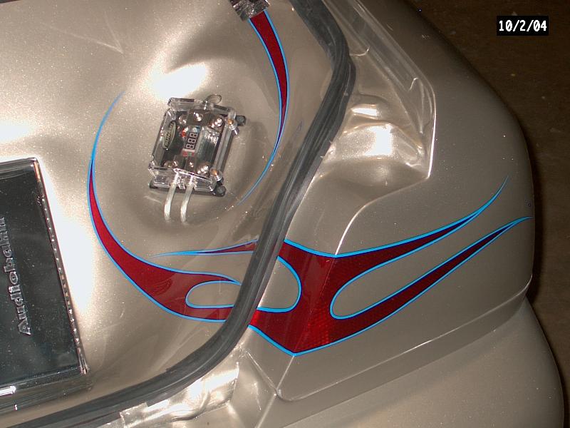 *Clarion TV Headunit *Clarion 6 disc changer (in glove box) *PS2 *2 PBX 12s *Audiobahn amp *Audiobahn mids and highs *Tsunami fuse blocks *All fiberglass speakerbox and trunk pan painted to match car with flames matching on trunk pan *ALL STEREO WORK DONE BY ScrapeN Customs (www.2scrape.com)