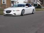 Shaved emblems, vinyl graphics, tinted windows, custom eyebrows, full blue underglow, 6 blue and white strobes, washer squirt lights