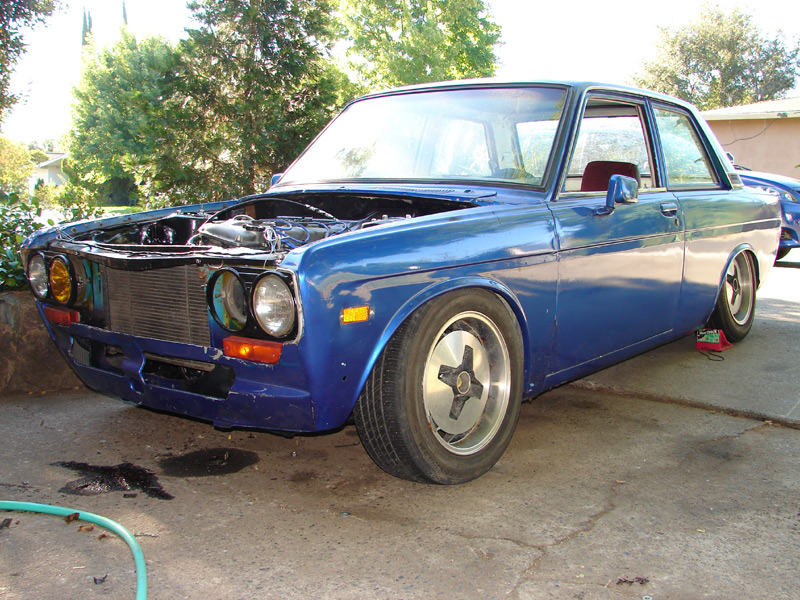 KA-24DE out of a '96 240sx- 2.4L, fuel injected. Tubular stainless header, cold air intake, de-smogged, removed a/c and power steering. 2.5" exhaust out to canister muffler. 5 speed trans., Walbro 255lph fuel pump, braided stainless line for feed and return.
