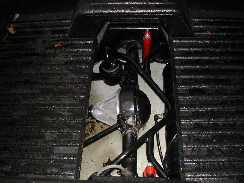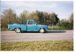 lays out on flipped kingpins with standard 2500lb bags up front. triangulated 4-link with same 2500lb bags out back. relocated fuel tank under rear of bed along with compressor, valves, and tank.