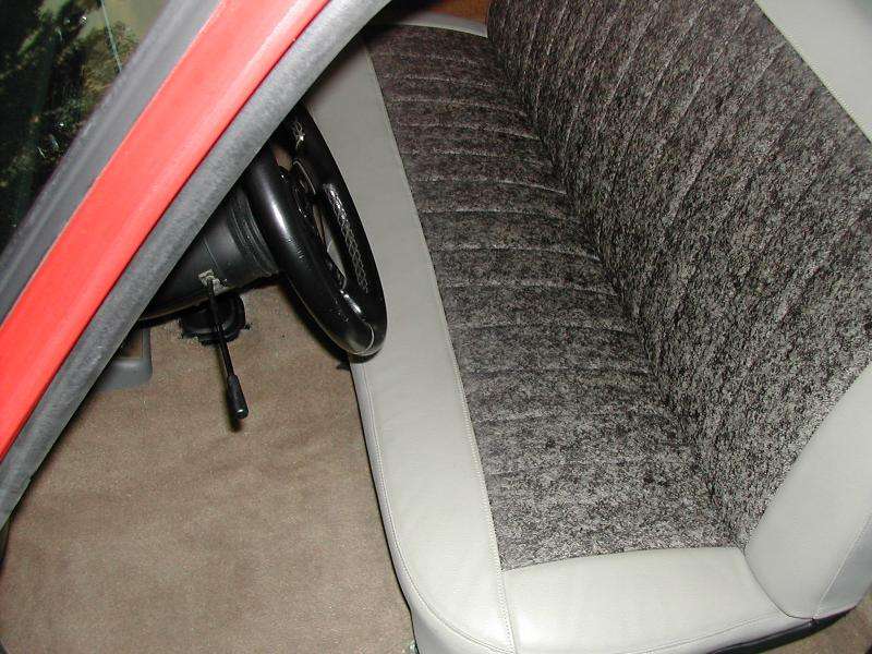 tan carpet, tan leather seat with cloth insert.