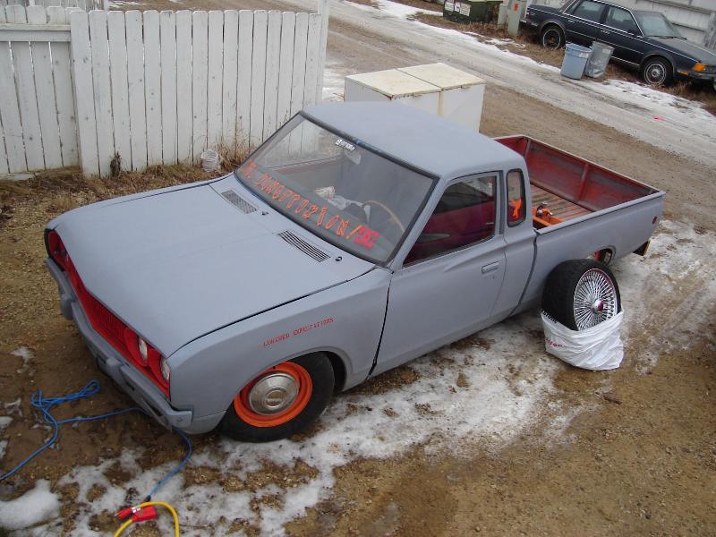 Grey primer, some decals. Shaved drip rails, antenna, Bed cargo hooks, etc