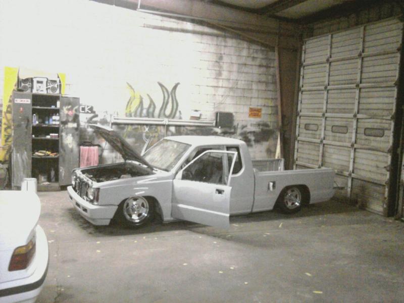 bagged lays frame 4link rear custom lower control arms in front front bagged to fit 22s rear not can fit 19s with no holes in the bed possible bodydrop in the future...