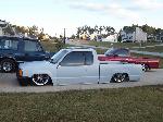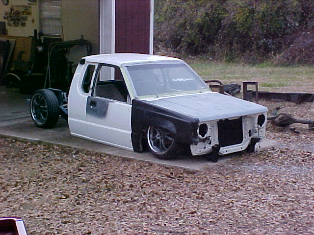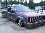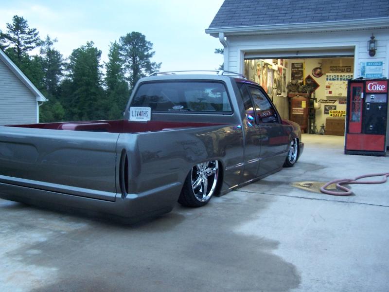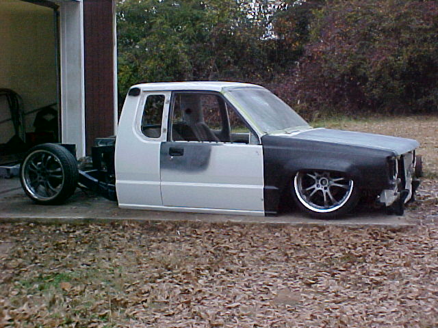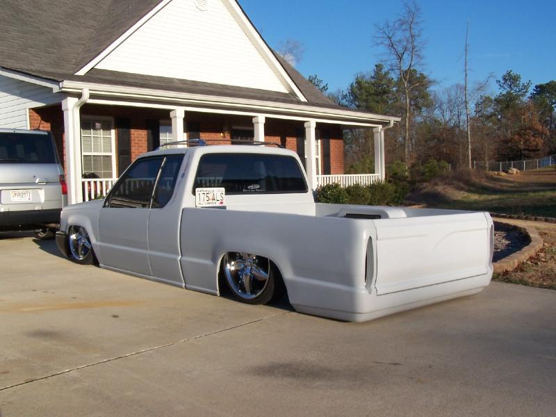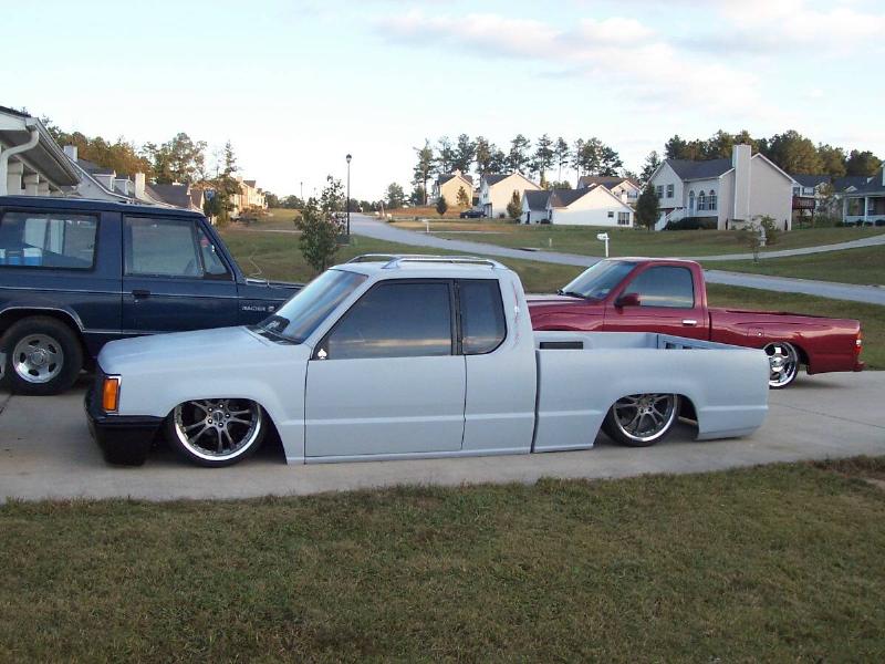 4.5 body drop cut 1 1/2 off the rockers stock ROOF RACK OFF A 87 RAIDER hood ,lowered the motor mounts 1/2 sheet metal bed shaved gas door sir micheals roll pan 95 mighty max bumper phantom grille lower bumper insert hot match gas cap shaved handles and tail gate lights