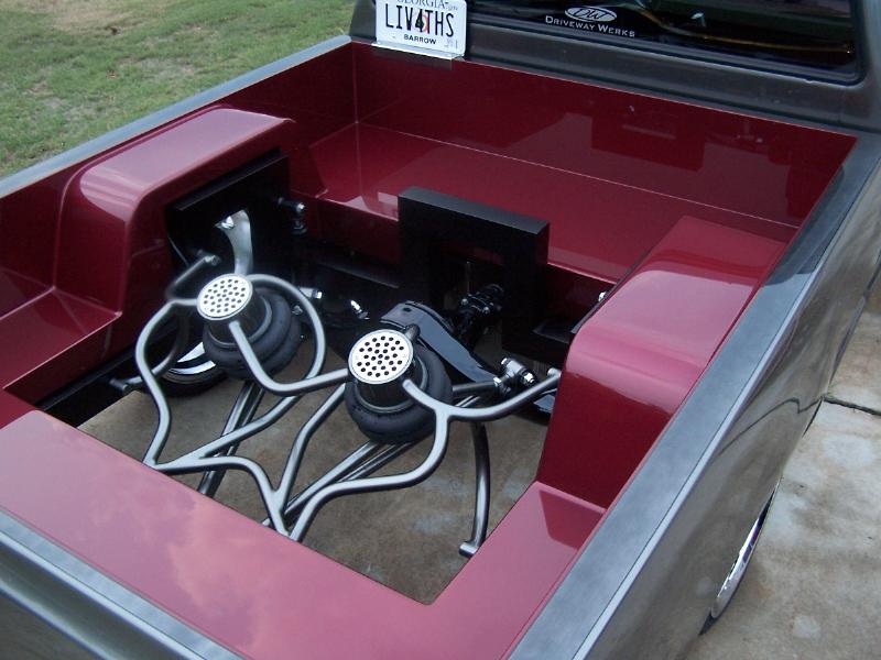 2500 bags drop spindle tublar upper control arm out back 12 inch monster notch pete and jakes four link pro shocks all the around toyota rear end toyota hubs