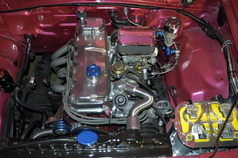 2.6 G54B, Weber 38mm carb, Pace setter Header, Removed all unnessary Electrical and vaccuum lines, painted inners, firewall and block, Blue Powdercoated parts,