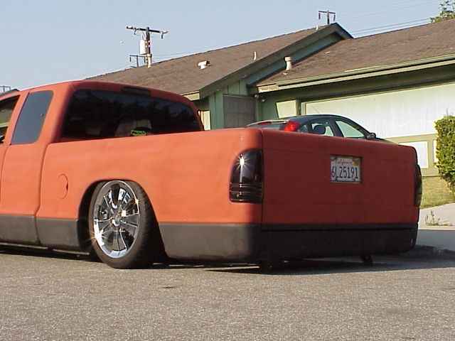 primer, shaved doors and tailgate, roll pan, licience plate in tailgate,tinted rear lights,front clear corner lights