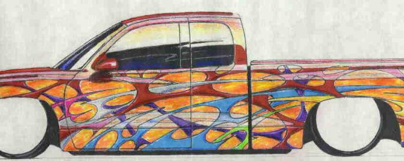 Fully shaved, repainted flame red (PR4), custom graphics by Charles "The Kid" Armstong