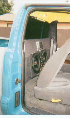 CUSTOM SUB-BOX FIBERGLASSED THROUGH THE BED INTO CAB/ FOSGATE HX2 12"/CALIFORNIA 8OO AMP/INFINITY IN THE DOORS & BACK PANELS/TWEETERS IN THE TOP CORNERS OF WINDSHILD ETC.